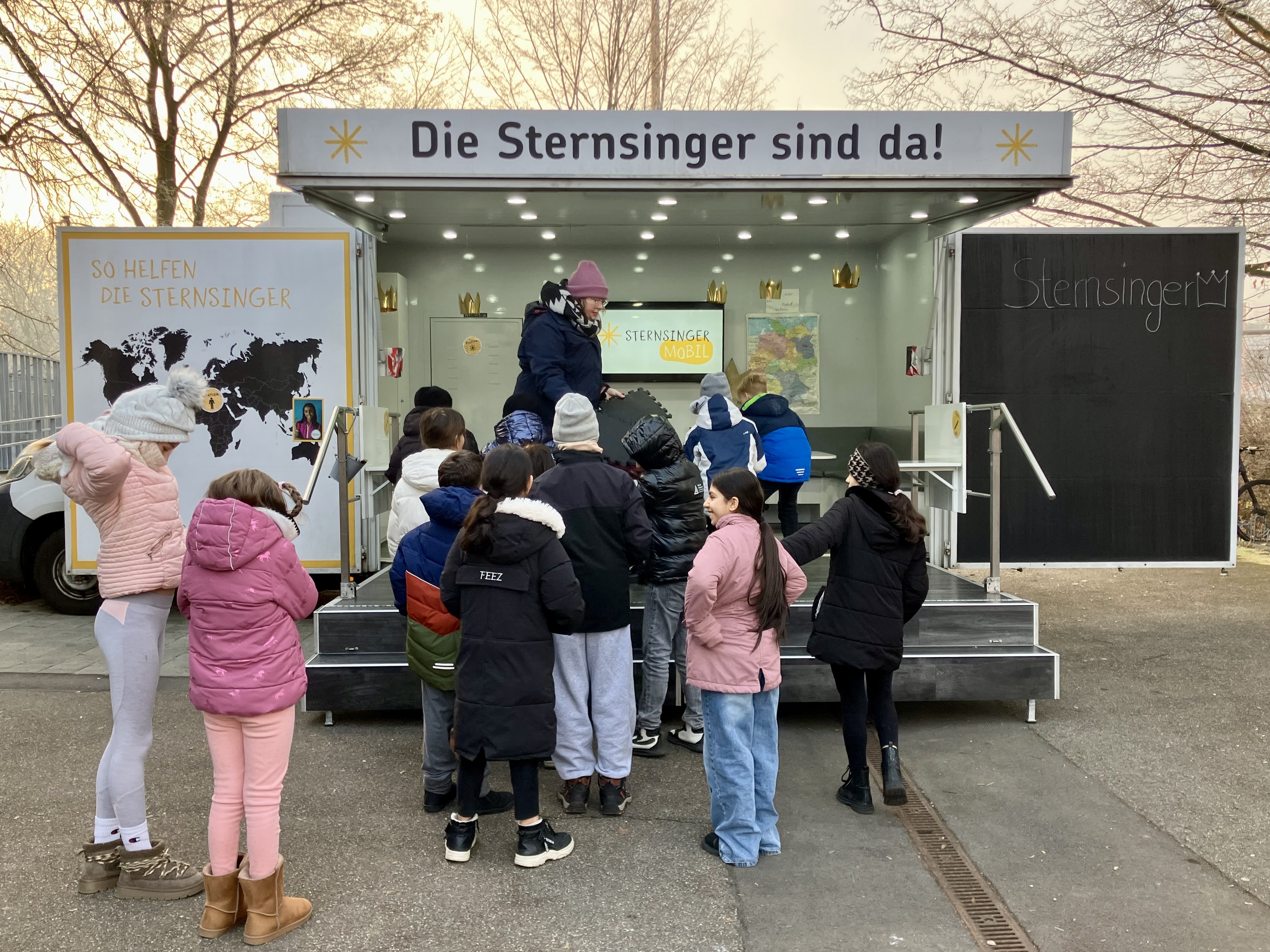 An die Eberhard-Ludwig-Schule Ludwigsburg, die Hirschbergschule Ludwigsburg und die Gustav-Schönleber-Schule Bietigheim ist das Sternsingermobil gekommen.